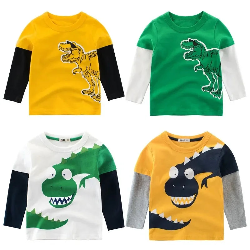 Expertly designed and safe for children of all ages, this cartoon dinosaur long sleeve t shirt is made with high-quality, chemical-free cotton. The perfect autumn addition to any child's wardrobe, this shirt features a classic o-neck collar and full-length sleeves, making it a comfortable and stylish choice for boys aged 4-6 years old. With a regular fit and available in sizes 2-10 years old, this shirt is sure to become a favorite among parents and kids alike.