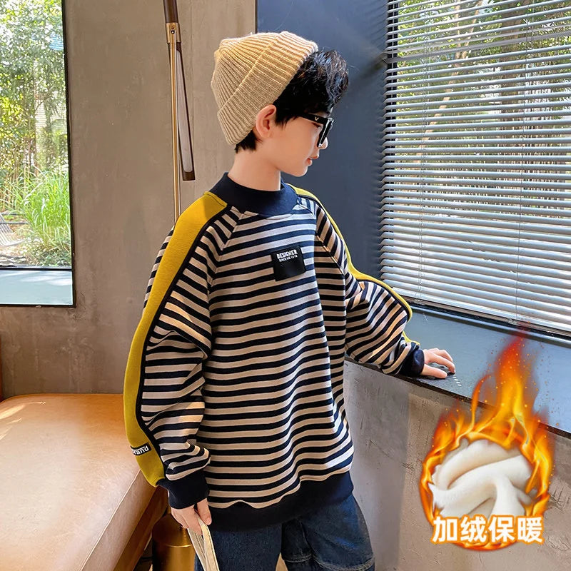 Expertly designed with comfort and style in mind, our Cool Stripes Velvet Sweater is made from high-quality cotton, cashmere, and wool materials, ensuring warmth and durability during the winter season. With a classic solid pattern and full sleeve length, this sweater is perfect for boys ages 25 months to 12 years old. A must-have addition to any child's wardrobe, this sweater is both functional and fashionable.