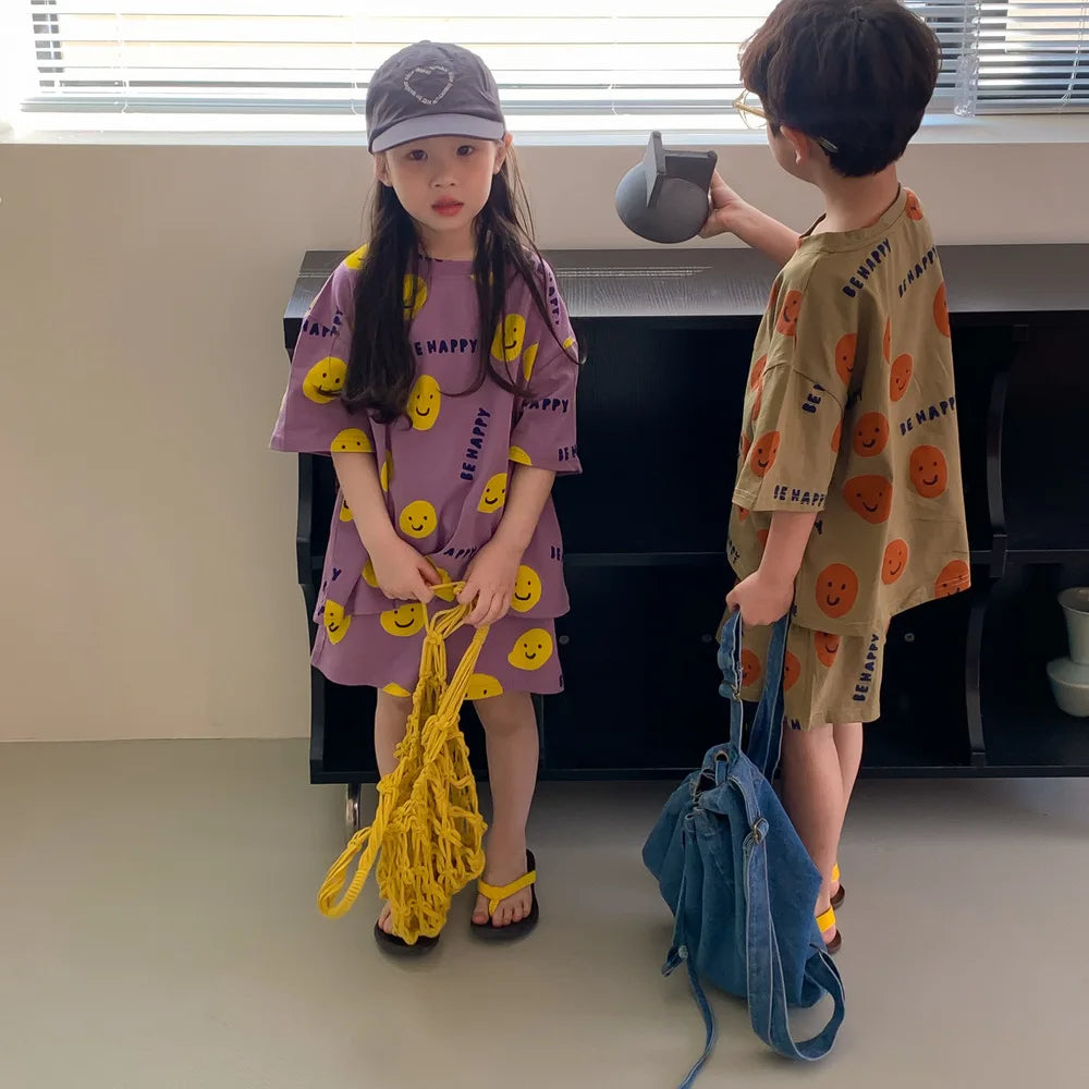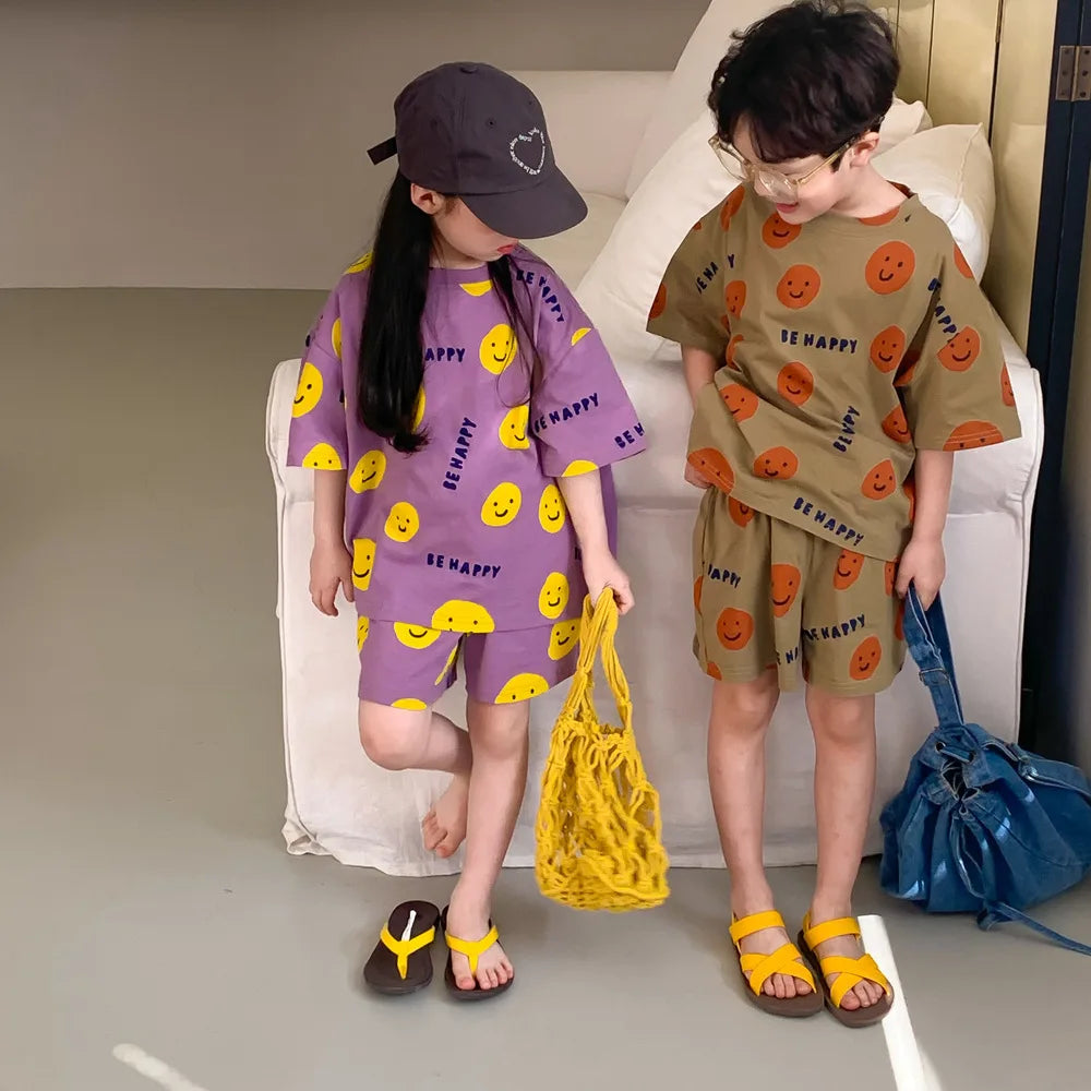 This clothing set is perfect for your little one, with casual and stylish designs perfect for the summer. Made with high-quality polyester, this set is free from any harmful chemicals and features fun and playful prints suitable for both boys and girls. The set includes a T-shirt, short sleeves, and shorts - all coordinated perfectly for a stylish and comfortable look. With a variety of sizes available, you can find the perfect fit for your child. Choose this set for your child's summer wardrobe and stay on-trend with the latest Korean and Japanese styles.